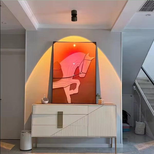 يعد جهاز الإسقاط بضوء غروب الشمس المثبت على السقف خيارًا مثاليًا لغرف الأطفال وغرف النوم، حيث يخلق أجواءً مختلفة بفضل تأثيرات الإضاءة الساحرة. استمتع بأوقاتك الخاصة مع عائلتك وسط إضاءة فريدة مستوحاة من غروب الشمس.